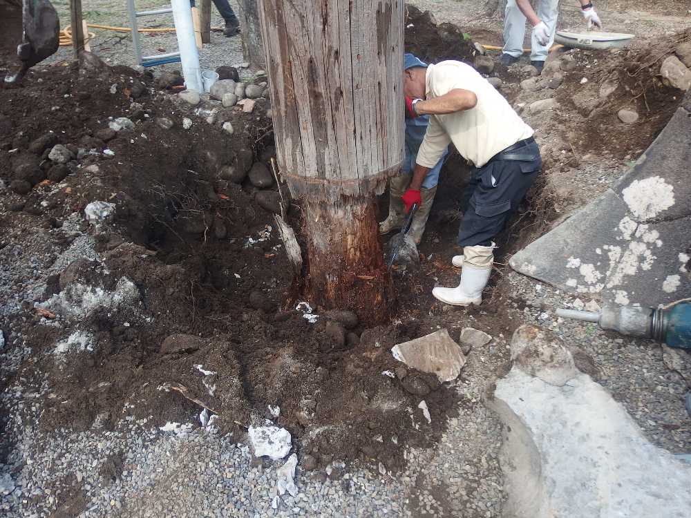 昨年、木を硬化させる薬品を注入した。