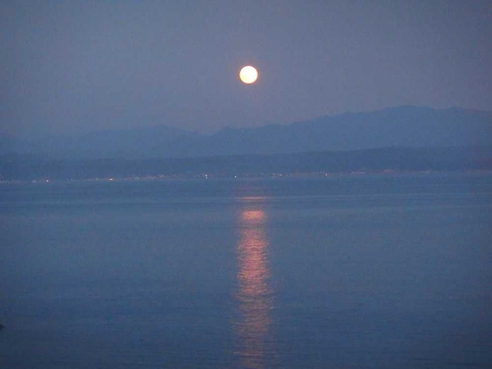 暮れなずむ錦江湾に満月が映る・・・月照を思い歴史をなぞる。