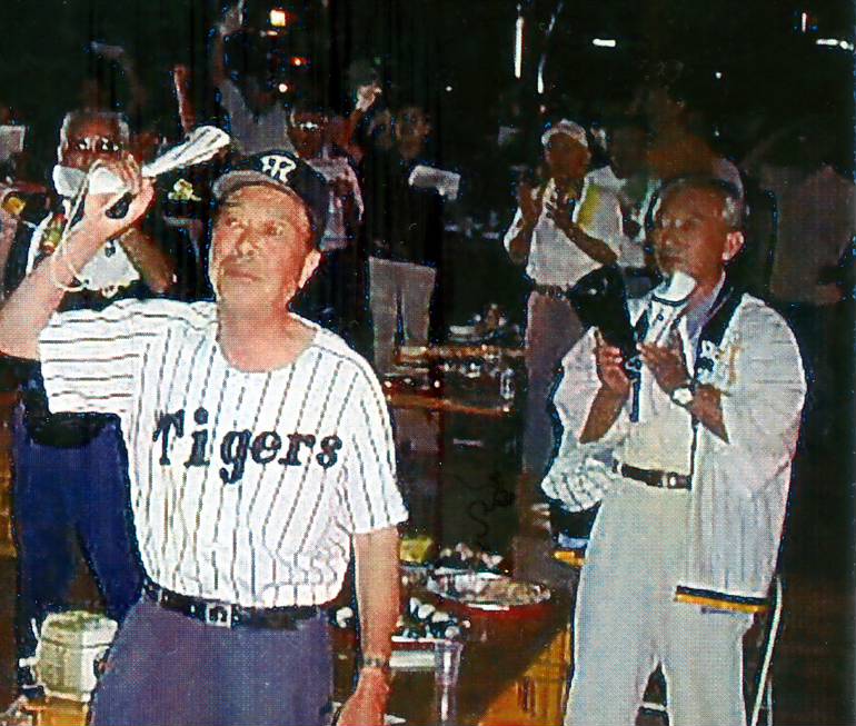 会長はまだユニフォームを着てコーチスボックスに立つ。