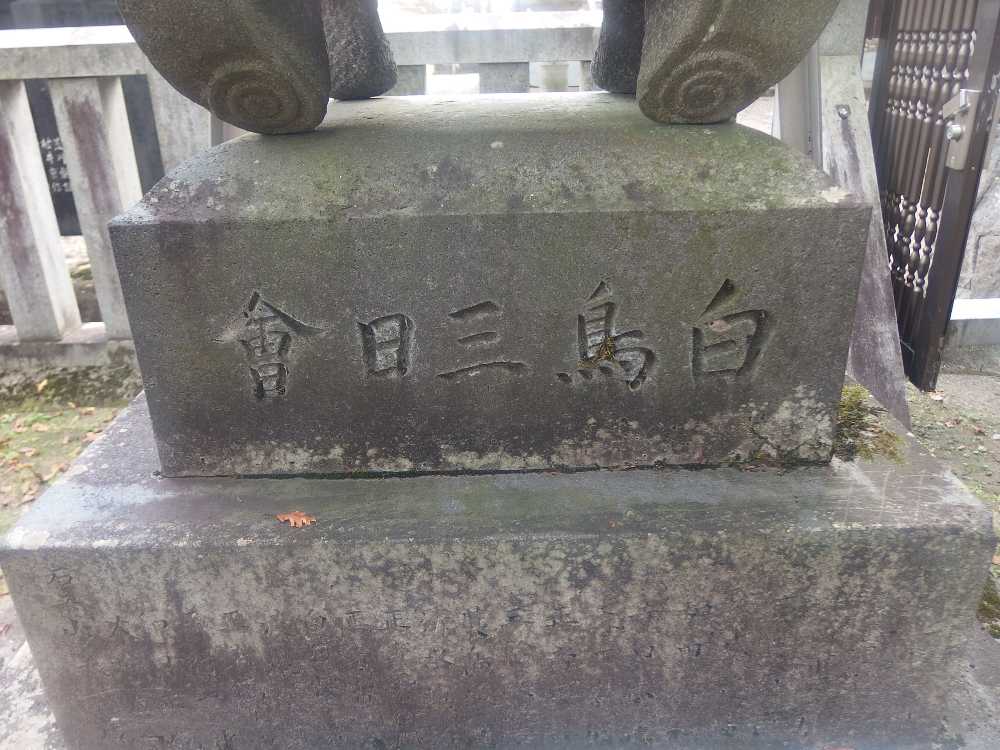 その台座に“白鳥三日會”と彫り込まれている。