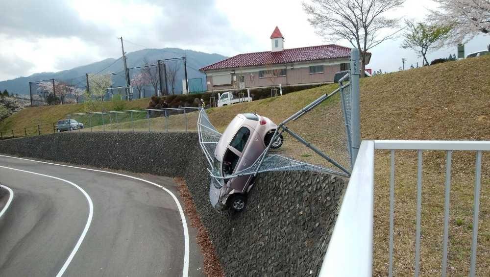 ネットがなければ、更に下の駐車場に転落しお陀仏だったろう。