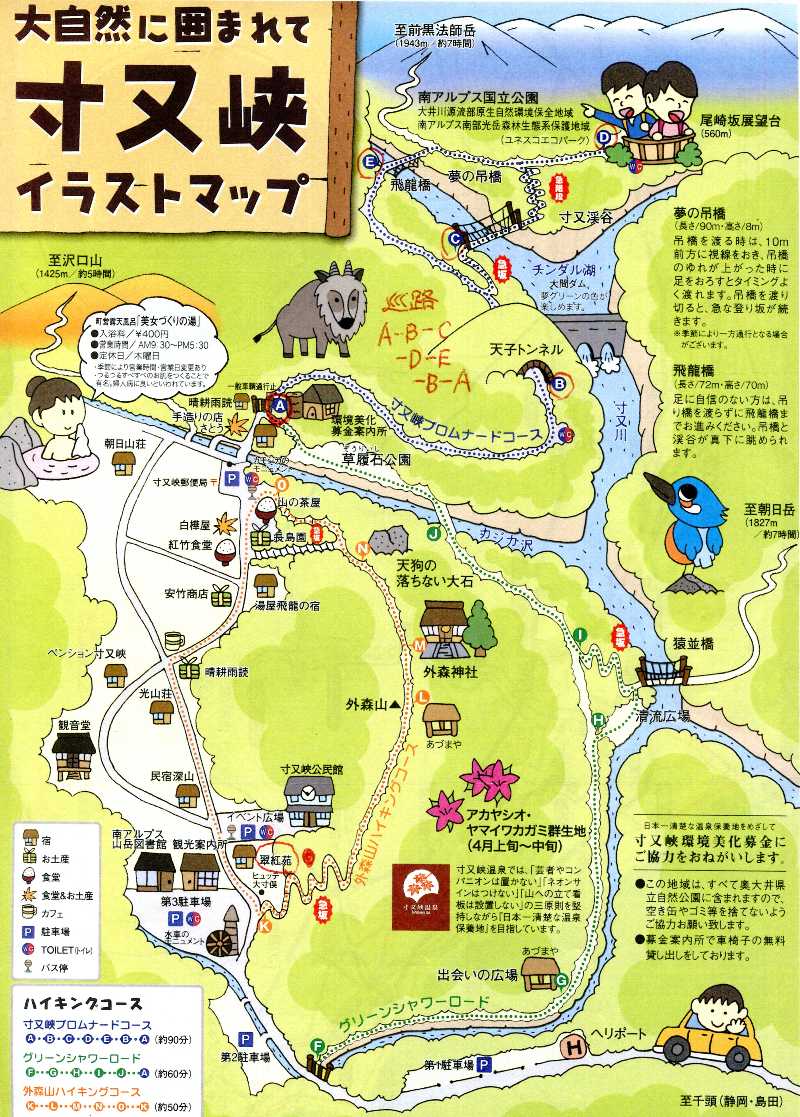 夢の吊橋までの約1時間半のコース。