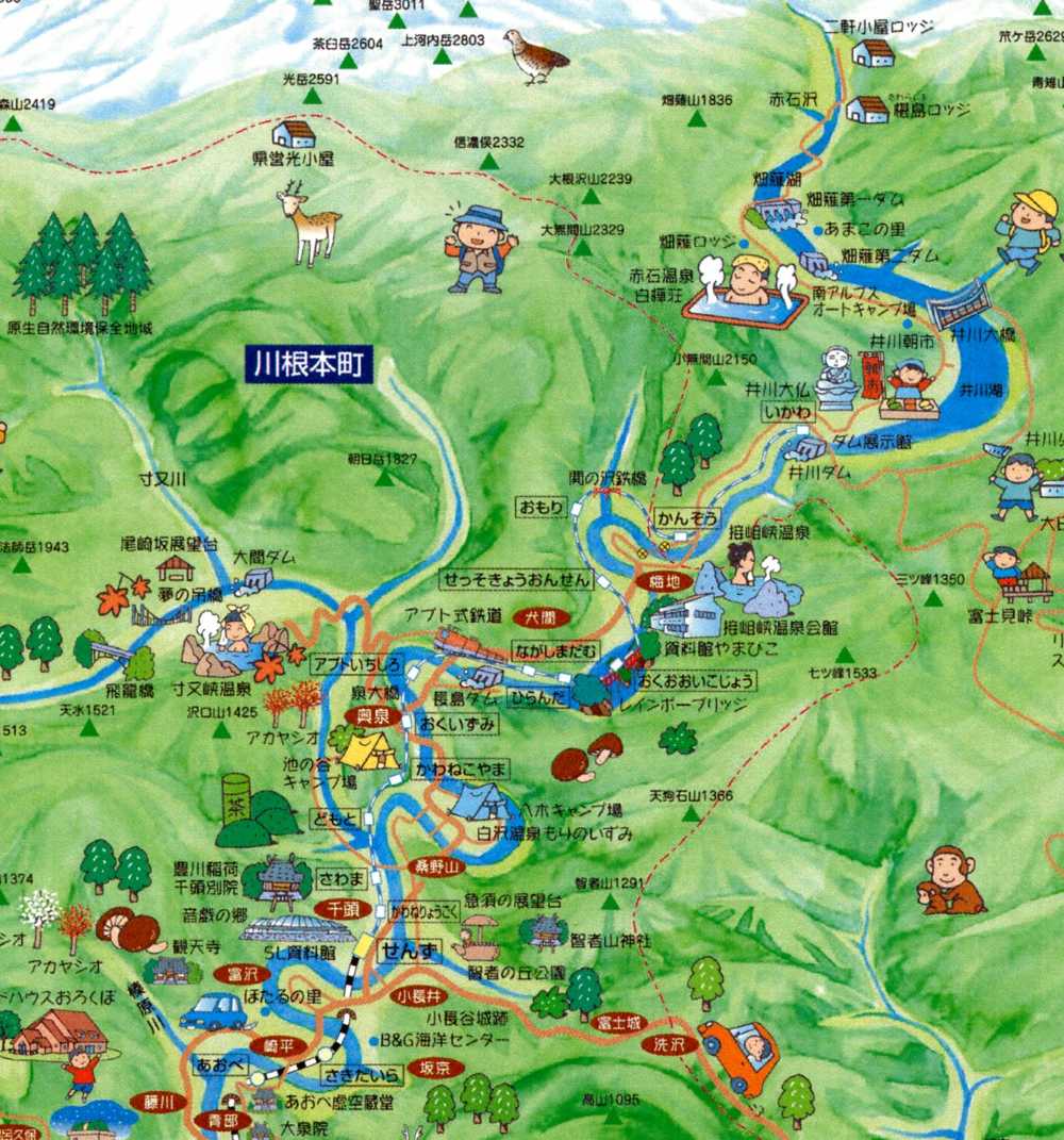 この水系の奥に畑薙第一、第二ダムがある。