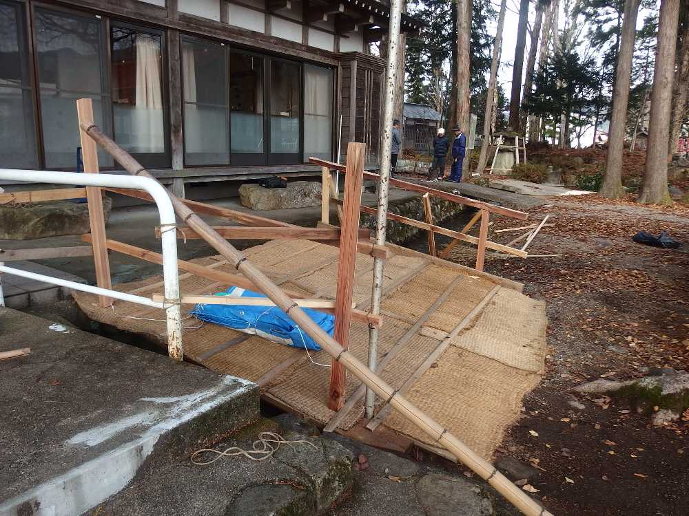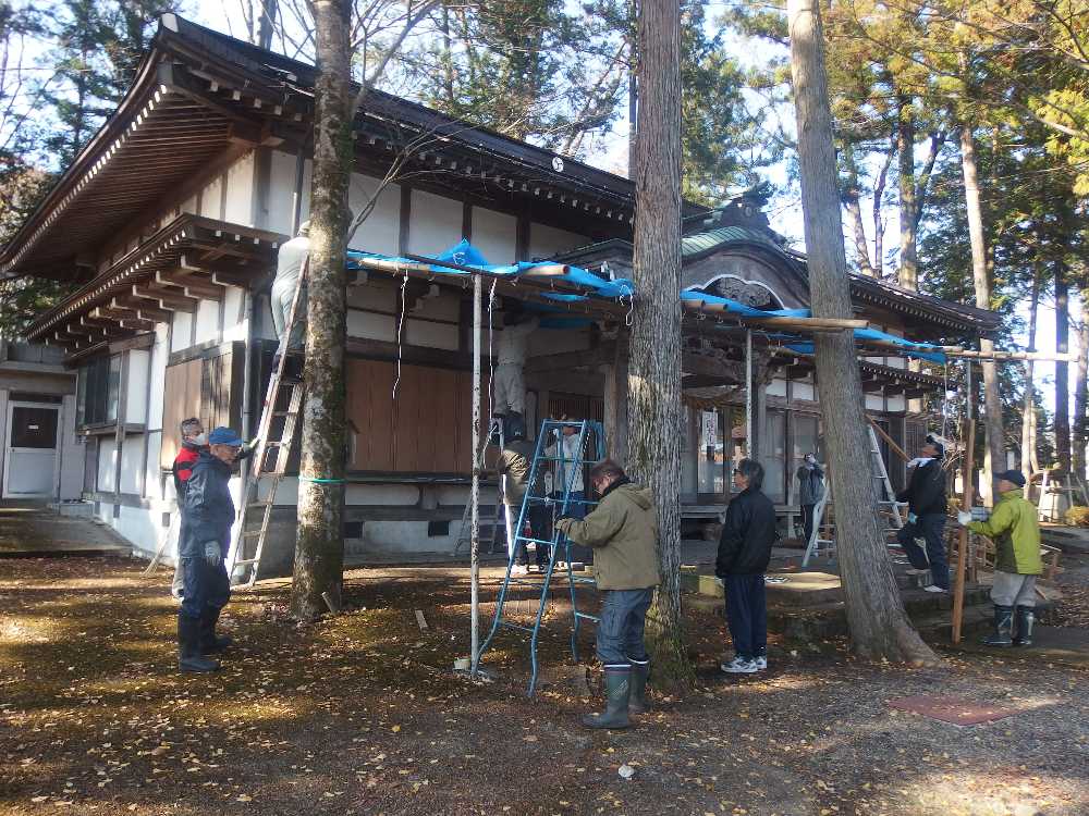 秋葉神社、豪雪で屋根が大破、総代衆で再建。