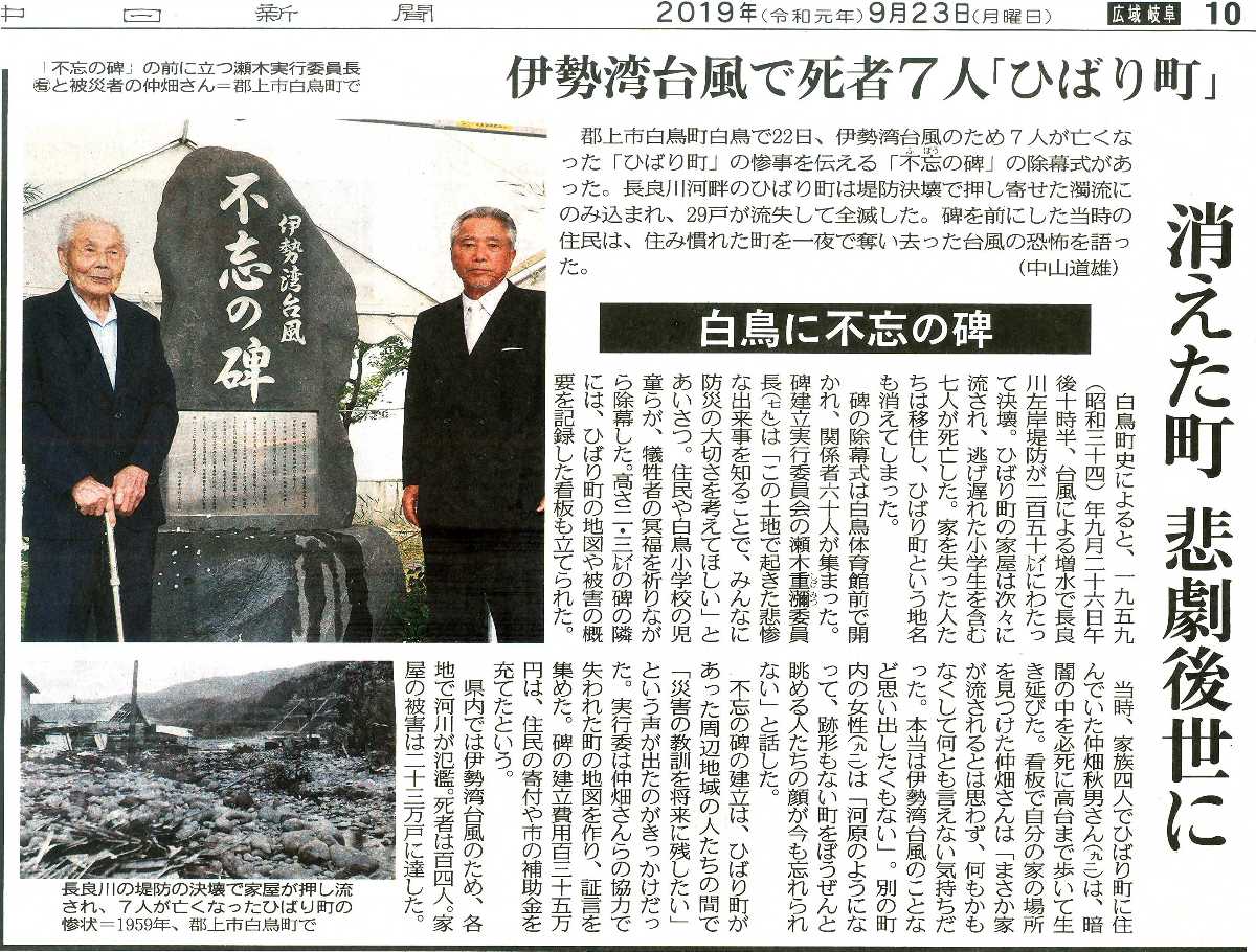 伊勢湾台風60年・不忘の碑建立に奔走。
