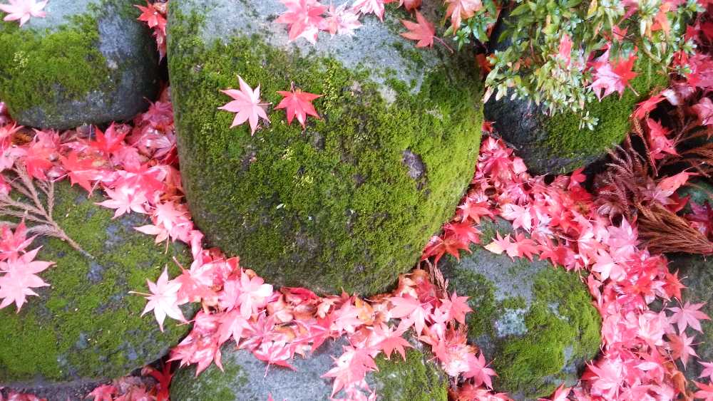冷たい清水を含み、周りの紅葉に染まり、昔を思った。
