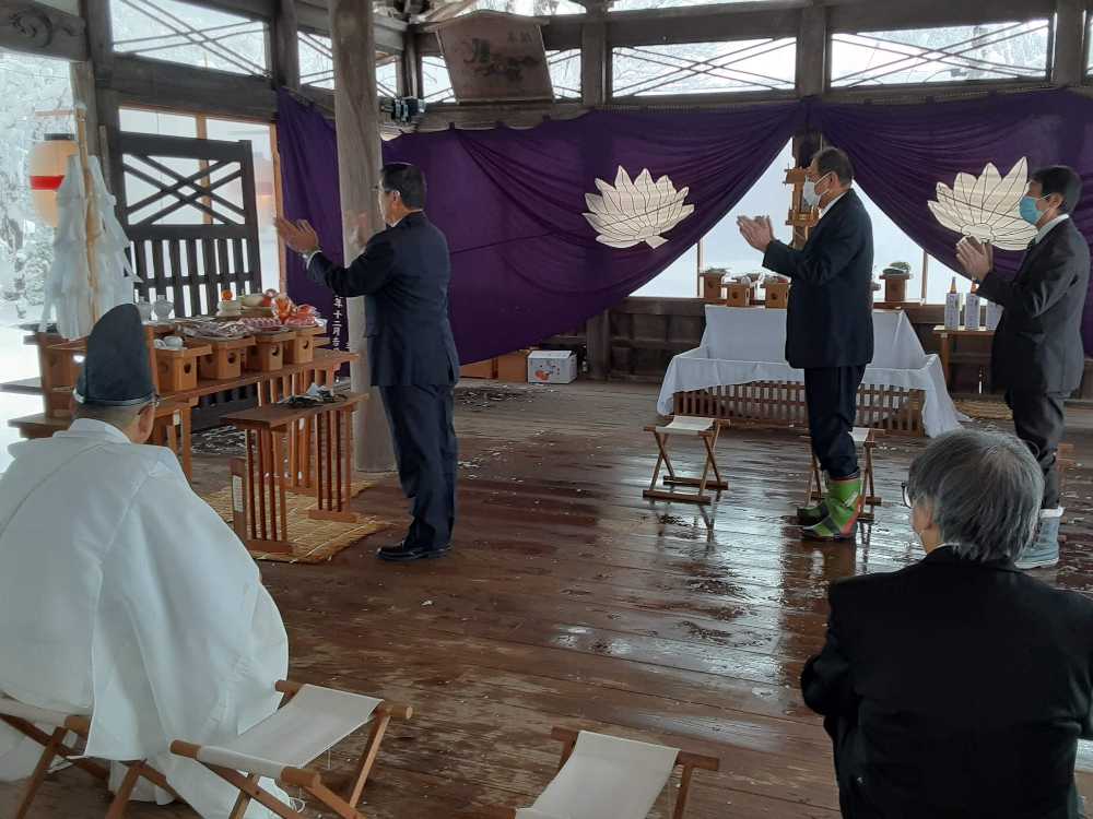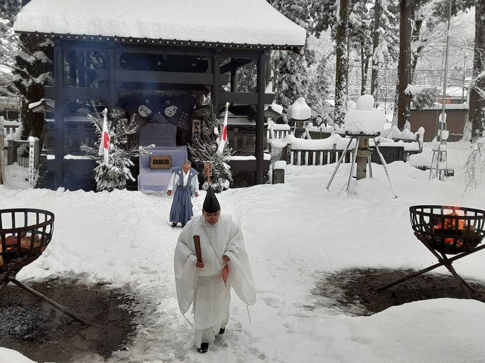 6年ぶりの雪の舞う中での神事となりました。