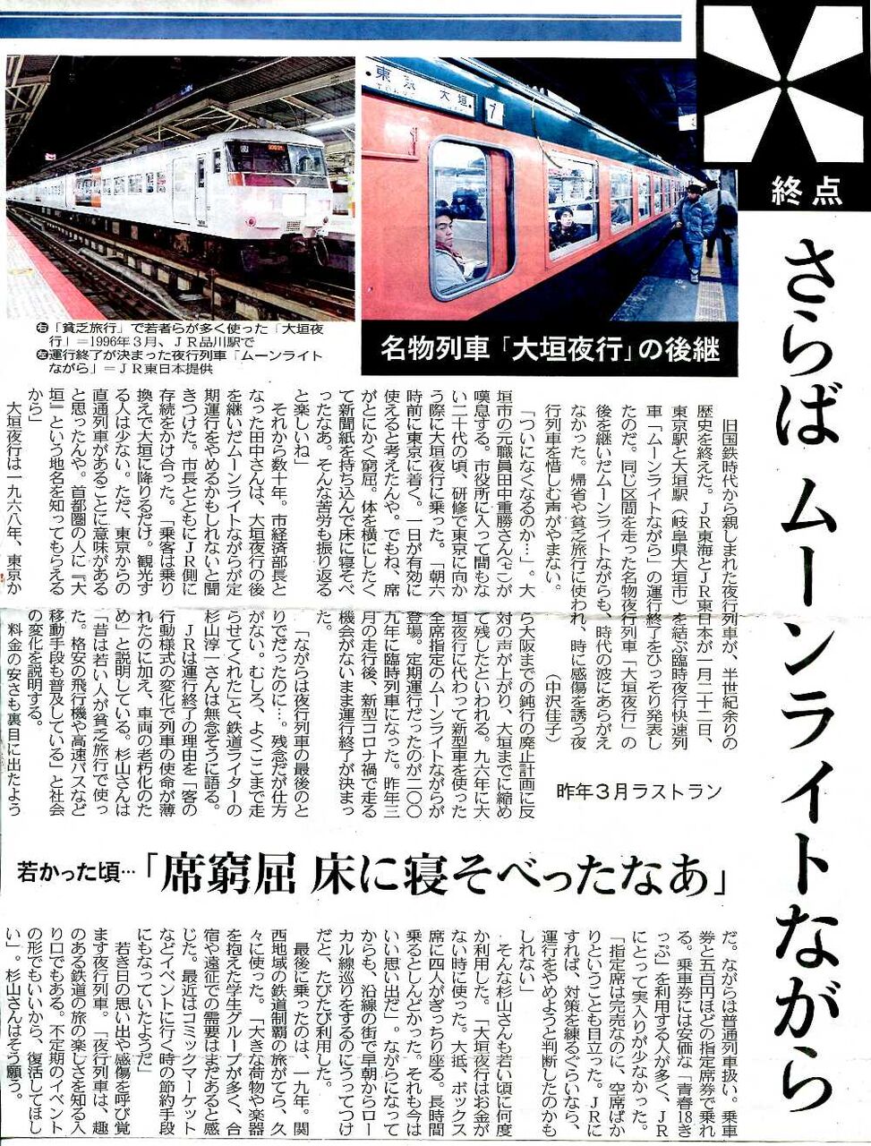懐かしい夜行列車が新聞に出た。