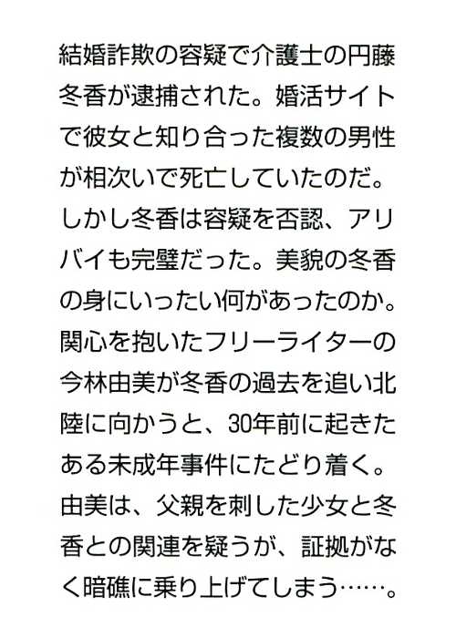 介護士の円藤冬香(姉・早紀)が結婚詐欺で逮捕される。