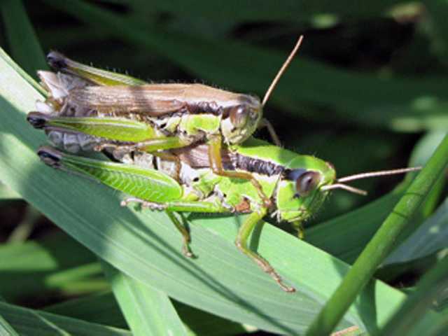 イナゴを捕まえて、長い針金に串刺しにした。