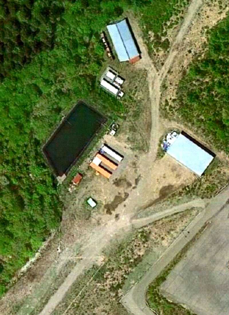 この池は人工降雪機で雪になる水である。