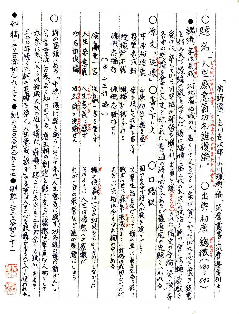 “人生感意気功名誰復論”でした。