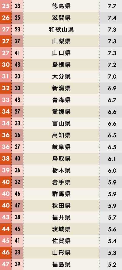 6位福岡、7位大阪、8位兵庫、9位千葉、10位静岡