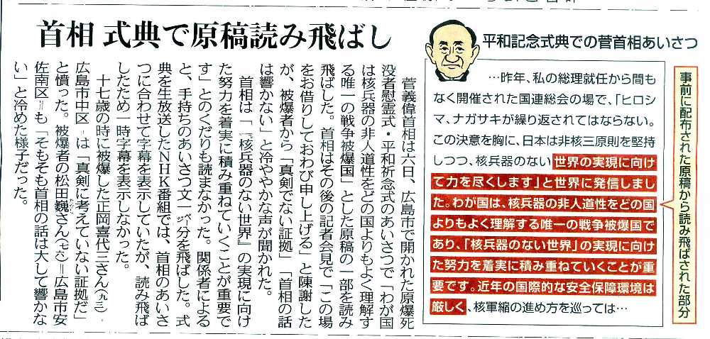 広島平和式典で菅総理の挨拶が空虚に響いた。