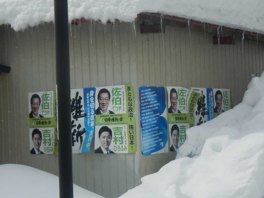 維新・佐伯のポスターはそのまま張ってある。