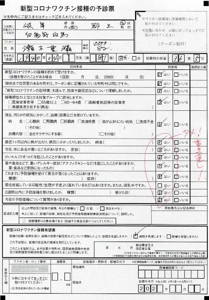 コロナワクチンを説明書で理解しましたか・・ハイ☑