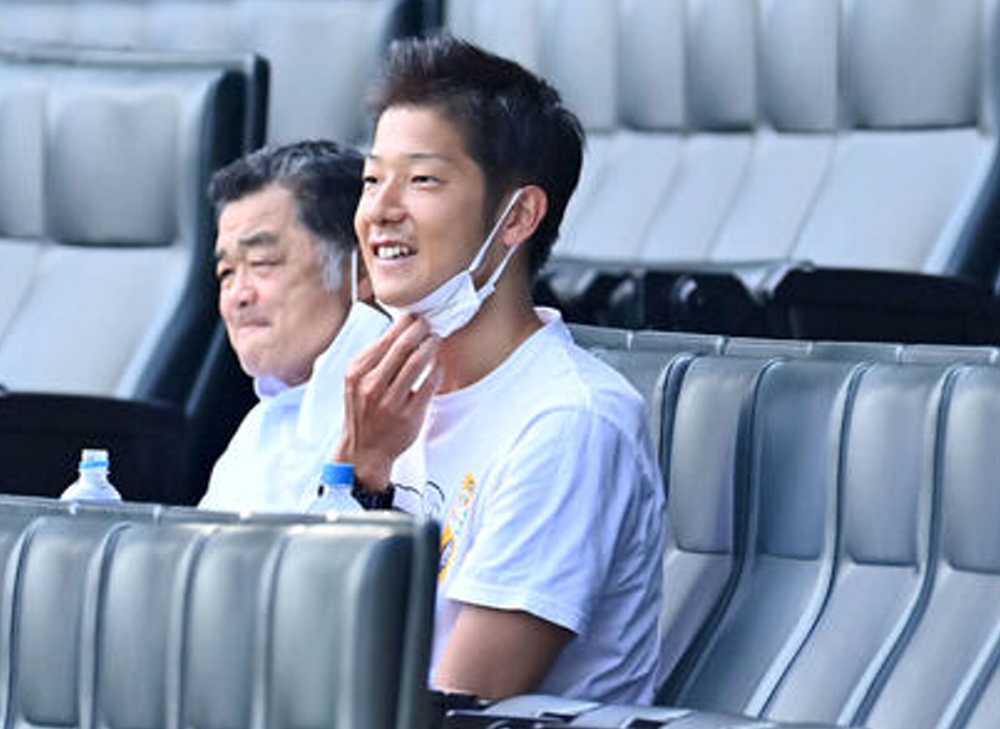 寅次郎はこの日、3塁コーチスボックスに居た。