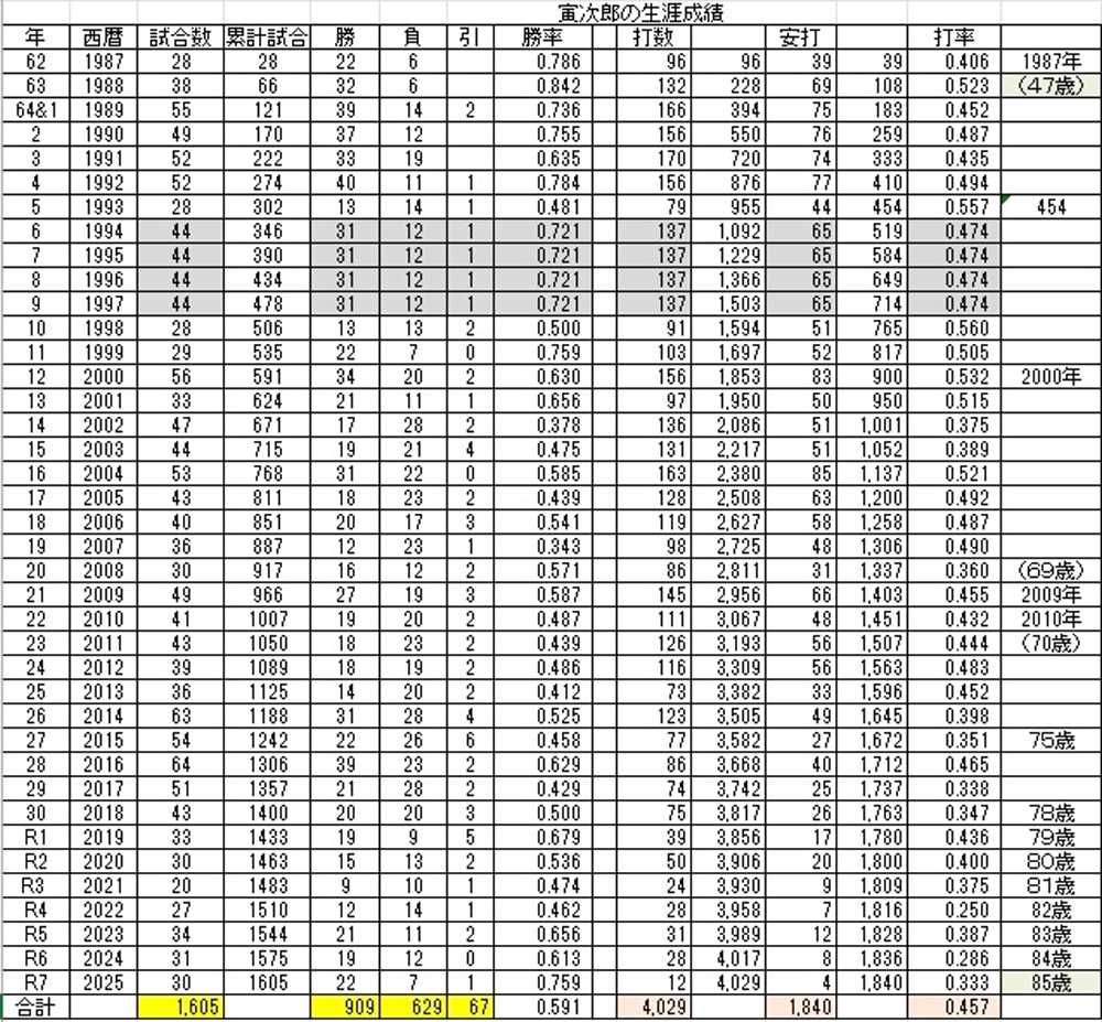寅次郎がイチロー並みの試合数をやれば4,122安打になる。