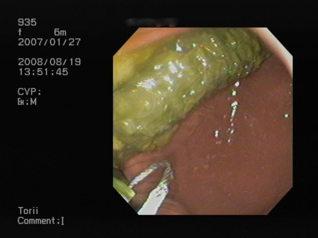 かなり大型のものだったので、内視鏡で使用出来る摘出鉗子が使用出来ませんでした。