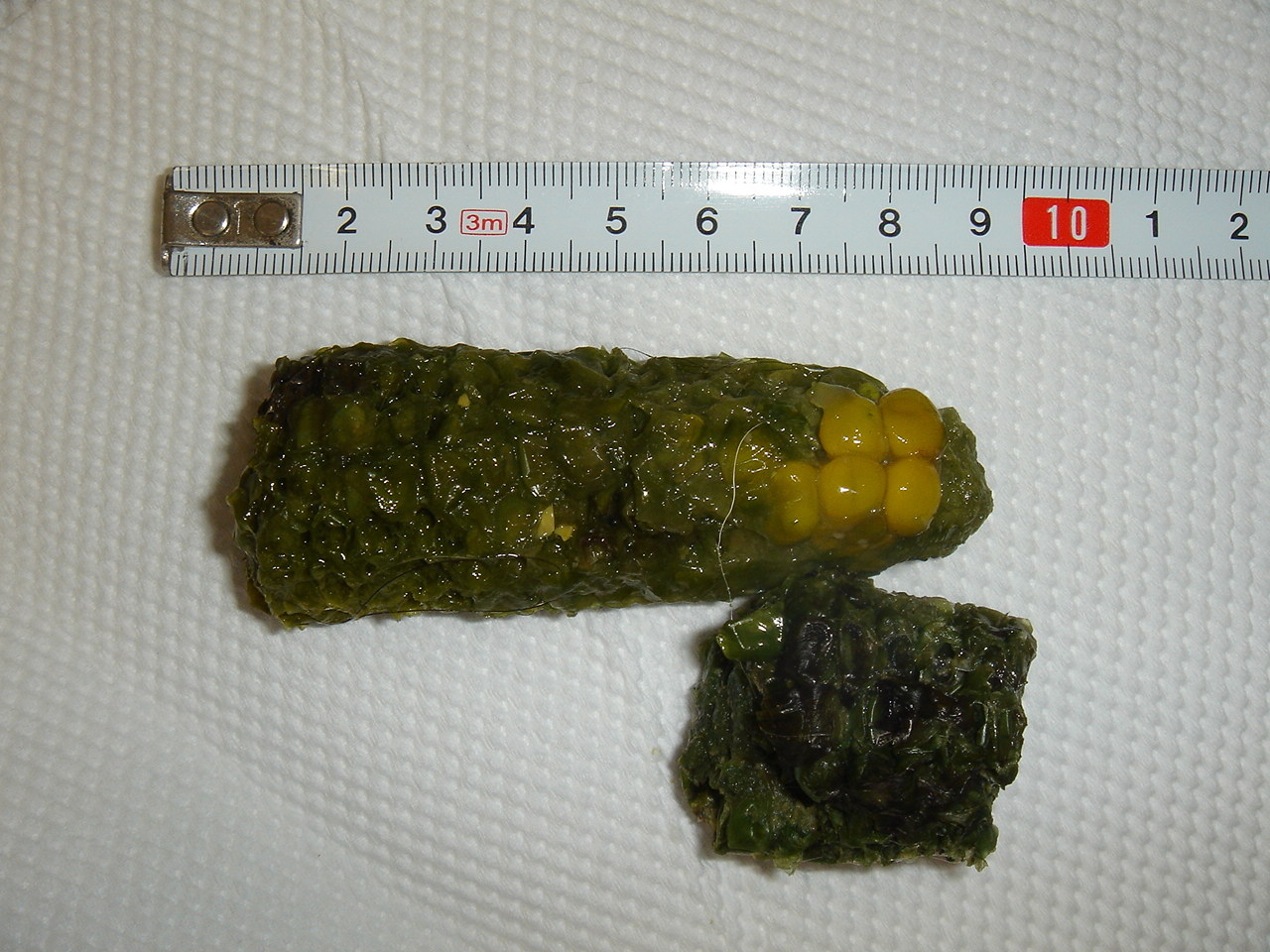 時間がかかりましたが、なんとか2つのもろこしの芯を摘出いたしました。