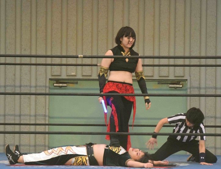 トトロはいぶきに声を掛けた後、勝ち名乗りも受けずに