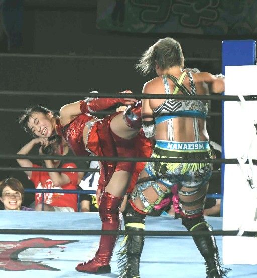コーナーからの攻撃は奈七永が阻止して雪崩式のブレーンバスター。
