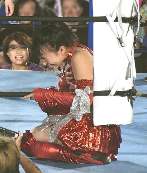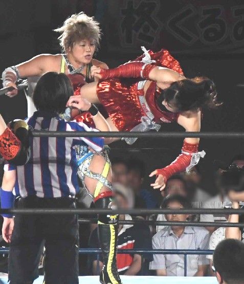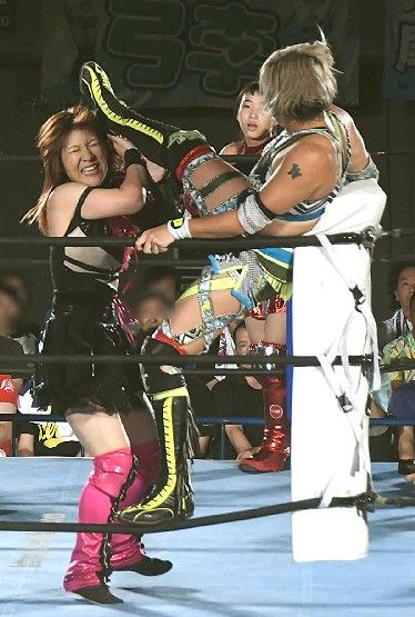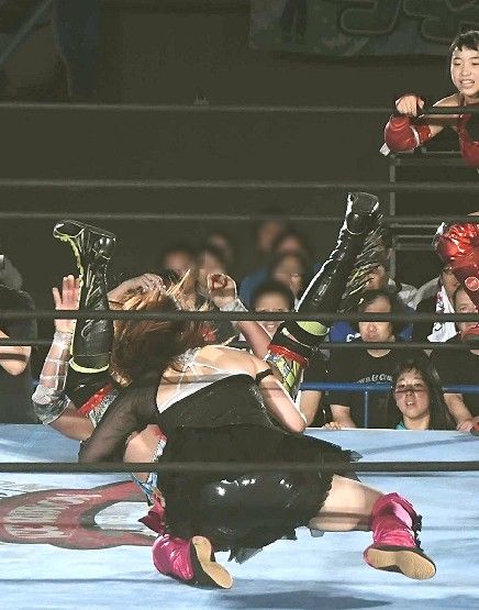 華蓮はローキックを連打。そこに中島安里紗が入り、
