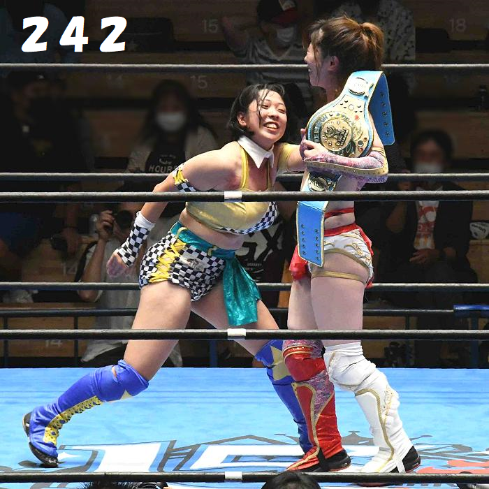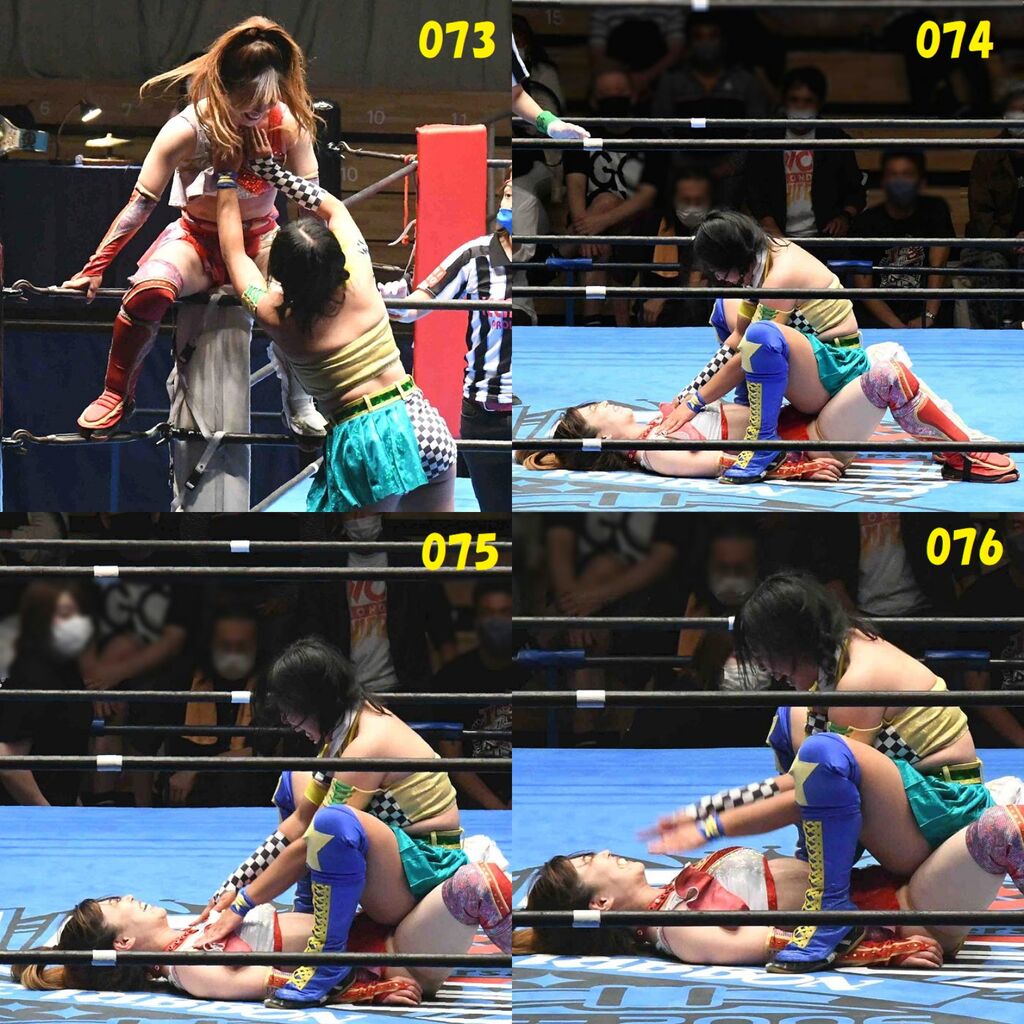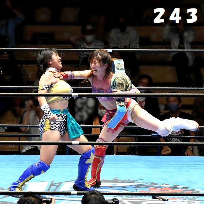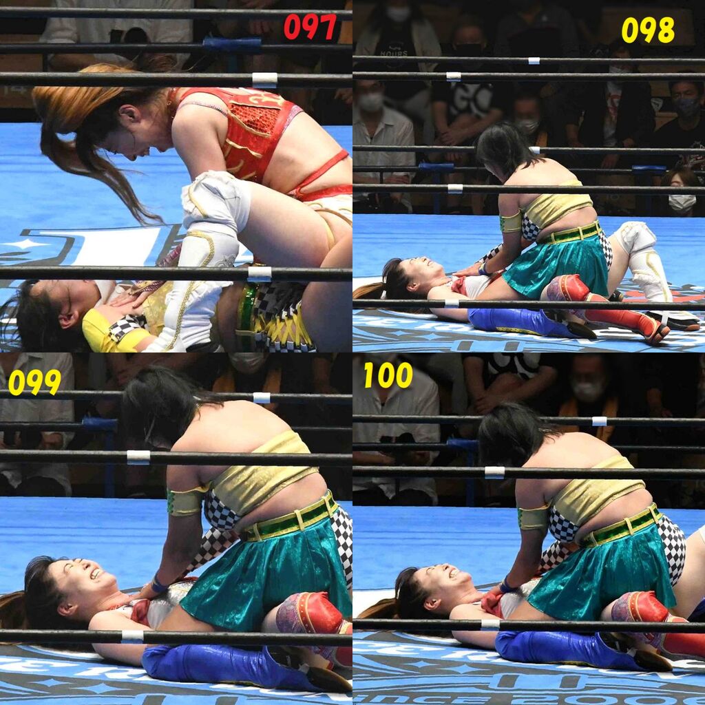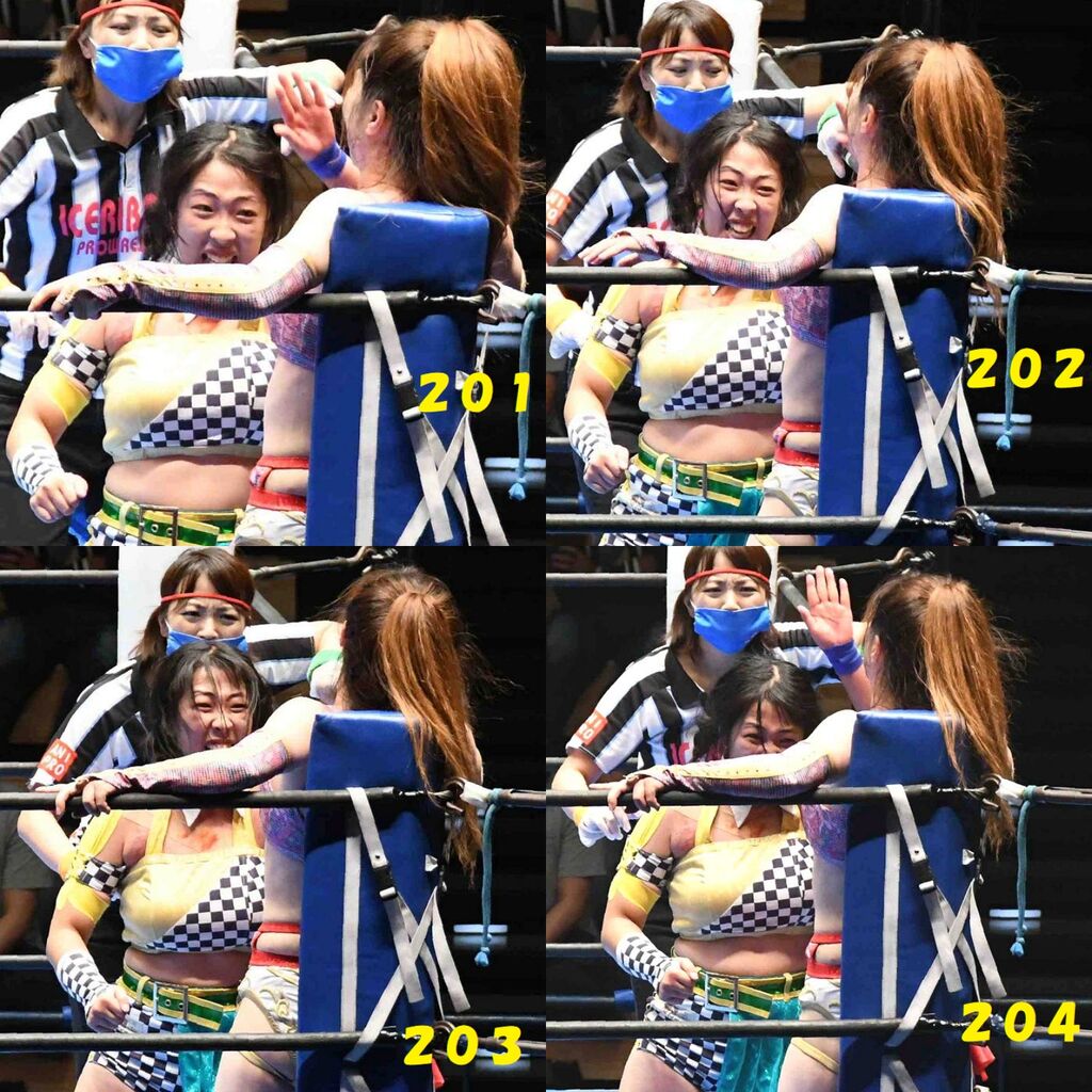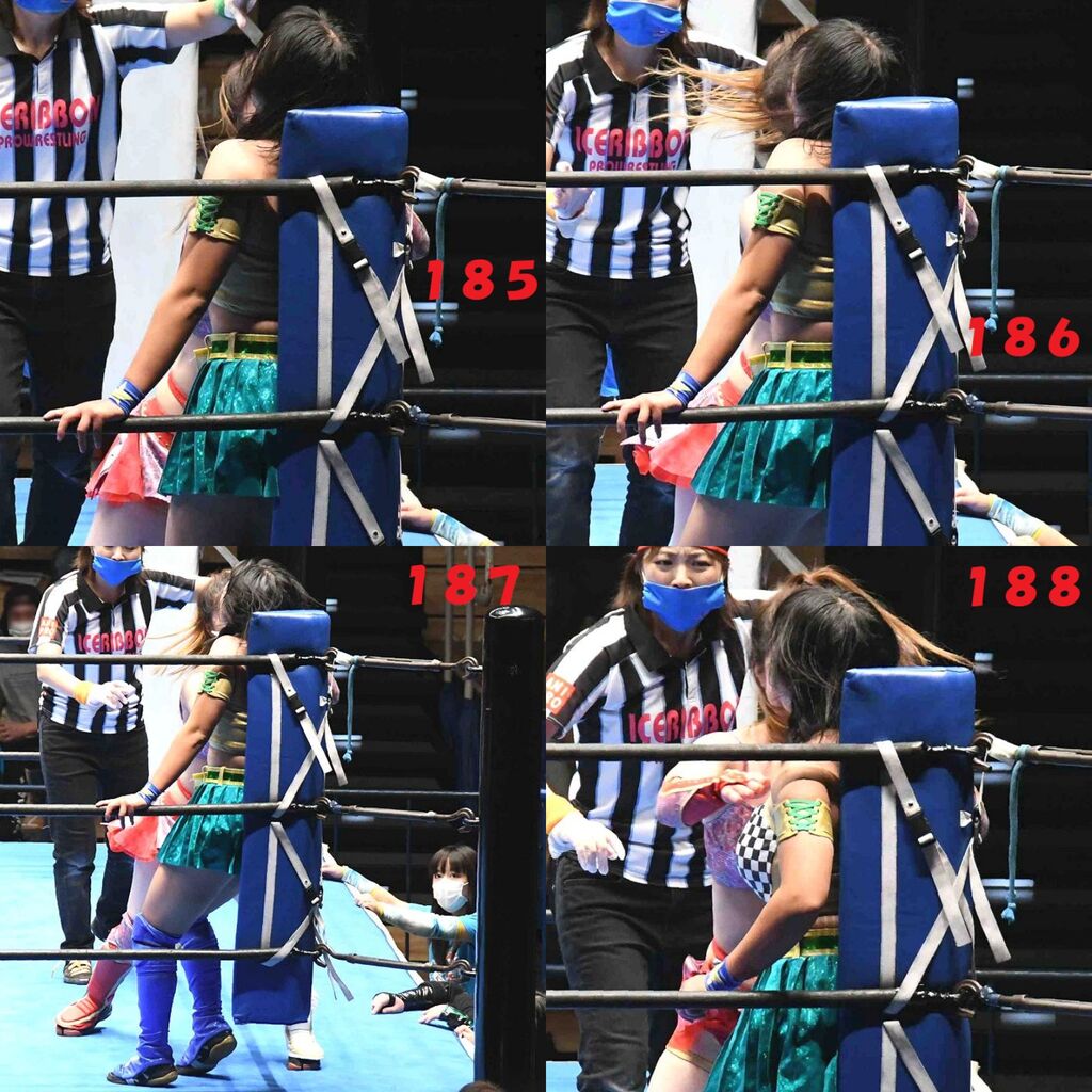 ✋藤本 vs いぶきのチョップ合戦、ほとんど見せます✋ 2021年09月21日 リボンの騎士たち2021での藤本つかさ vs 星いぶき、そのチョップ合戦だけをまとめました。週プロの記事に「合計240発超のチョップ合戦」とあったので、「ほとんど見せます」と言っていいのではないかと。マシンガンチョップには確実に撮り逃しがあります。あまりにも速すぎてシャッターが追いつかなかった!1本の記事で一気に見せたかったので、4発を1枚にまとめています。最初は1発1枚で載せようと思ったんだけど、さすがに膨大すぎでヽ(・ω・;)ノ写真中の数字は推定の合計数。赤=藤本つかさ黄=星いぶきのチョップ。試合後のチョップのみ、2人とも白としています。では一気に御覧ください!最高の試合をありがとう! 「藤本つかさ」カテゴリの最新記事 < 前の記事次の記事 > コメント コメントフォーム 名前 コメント 評価する リセット リセット 顔 星 投稿する 情報を記憶
