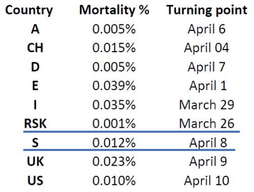 韓国とスエーデンでロックダウンは行われていないが、感染者が級数増大せず飽和している。だから、ロックダウンは無意味と言える。と議論しています。