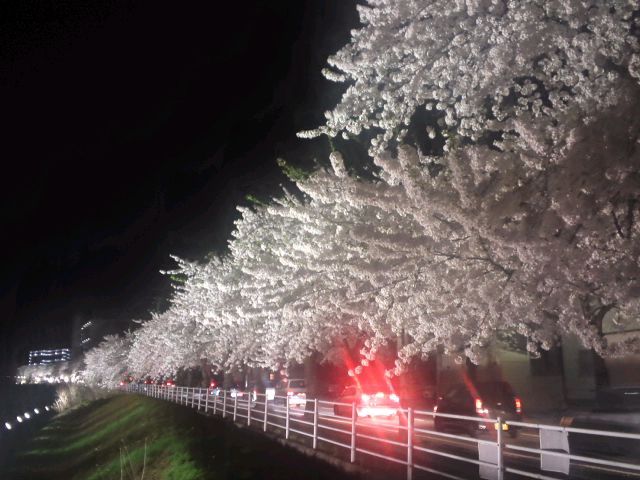 夜は馬見ヶ崎のさくらラインライトアップ