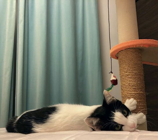 元気で、ごはんもよく食べ、ネコのおもちゃでも遊びます。猫トイレも上手く使えます。