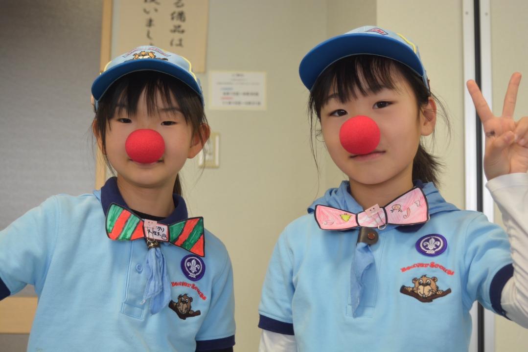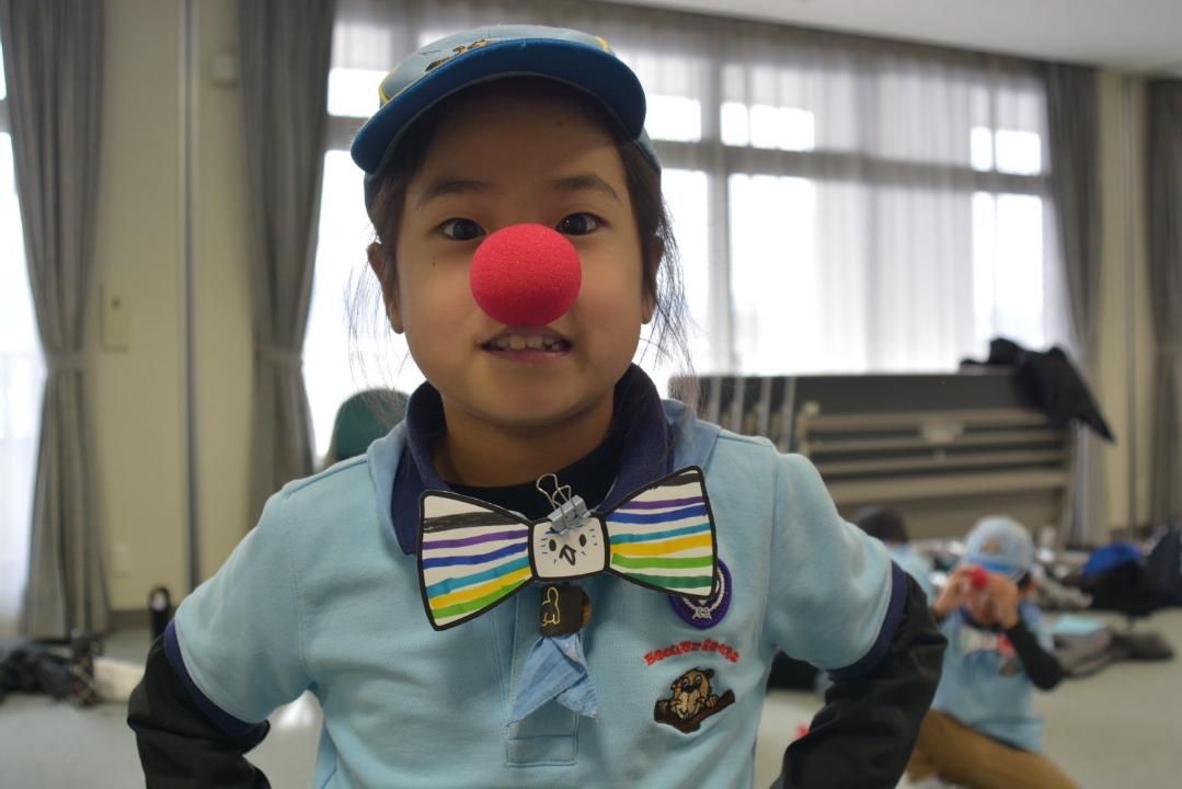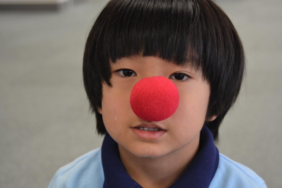 赤鼻をつけて赤鼻のトナカイを歌います。似合うでしょ!