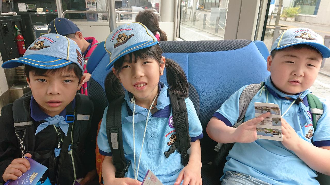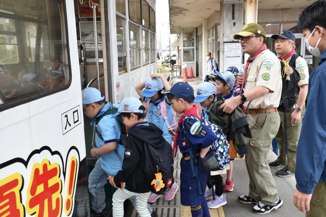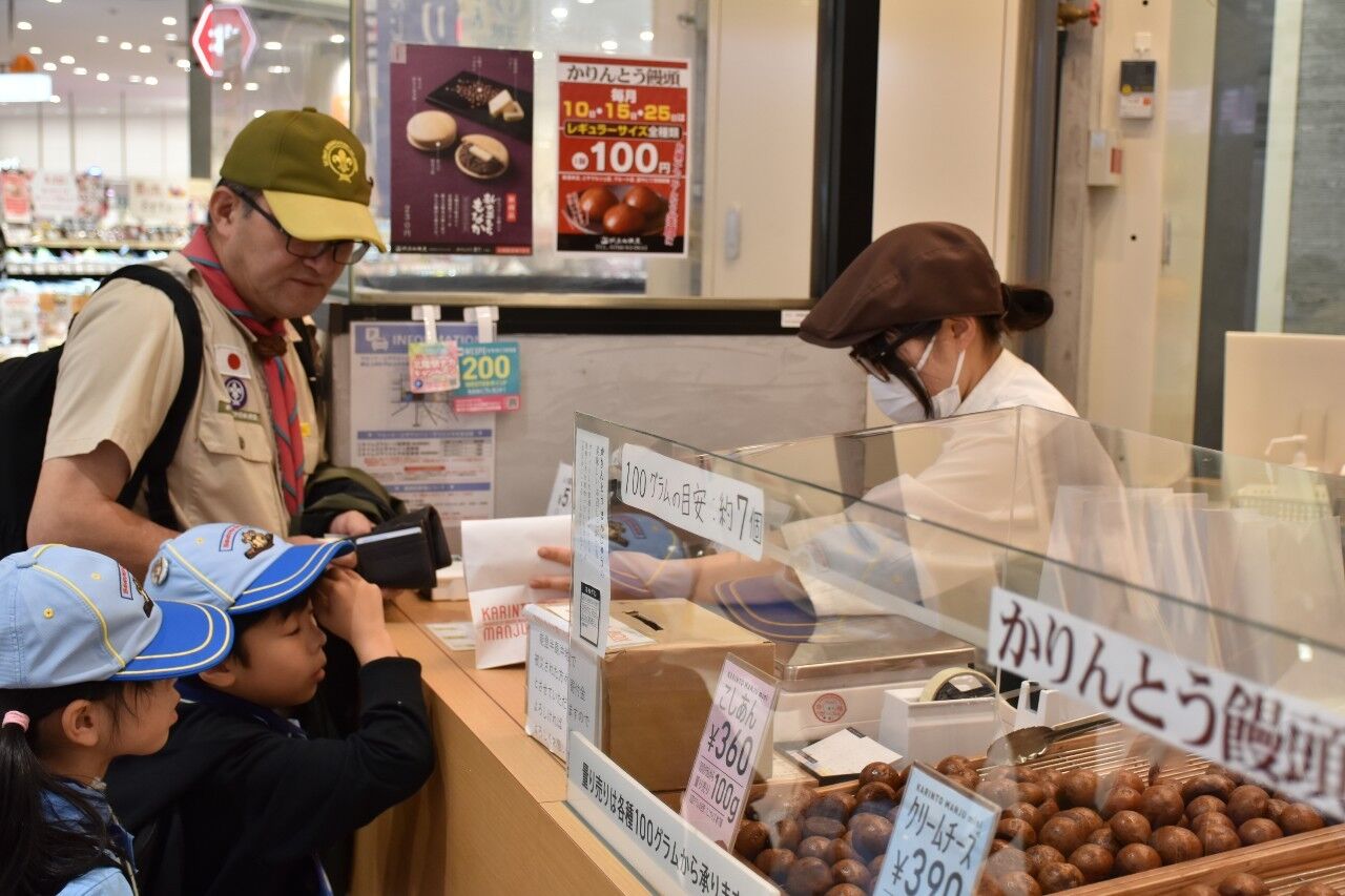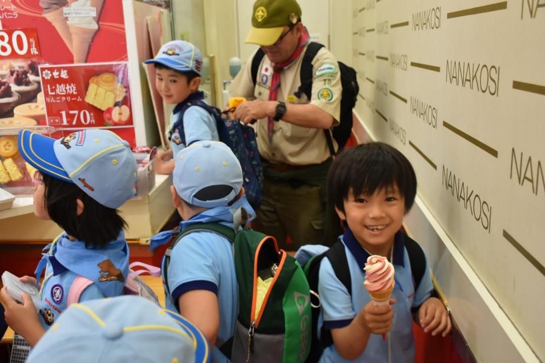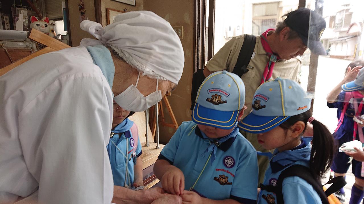 5月12日日曜日の隊活動は「げんきじ電車でGO!ミステリーツアー」です。朝9時南富山駅に集合。市電に乗って市内環状線をお買い物しながら一周しました。7名のスカウトがキチンと並んでお座り。市電まわる探検&お買い物。①富山市役所の展望台から会社の社名探し②MAROOTでかりんと饅頭(母の日・お母さんの分も一個購入③川上のますのすし④グランドプラザの七越しでソフトクリームを購入、カードに母の日感謝の気持ちを書いてかりんと饅頭といっしょにお母さんに渡しました。19日日曜日はボーイスカウト富山県大会。みんなげんきに参加してね!
