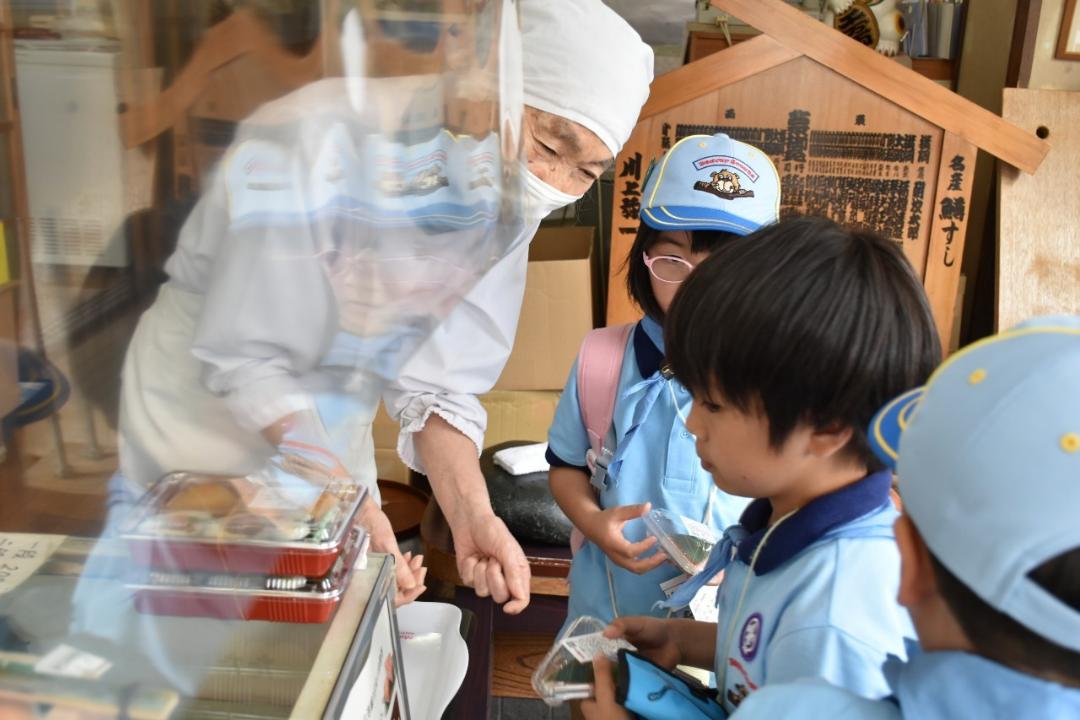 川上のますの寿司で鱒寿司買いました。(一個250円です)