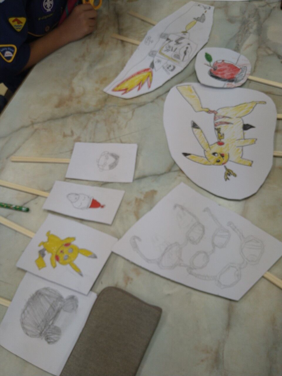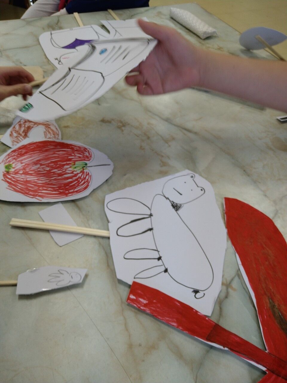 次は組集会で準備したペープサート、キャラクターもストーリーも自分たちで作りました