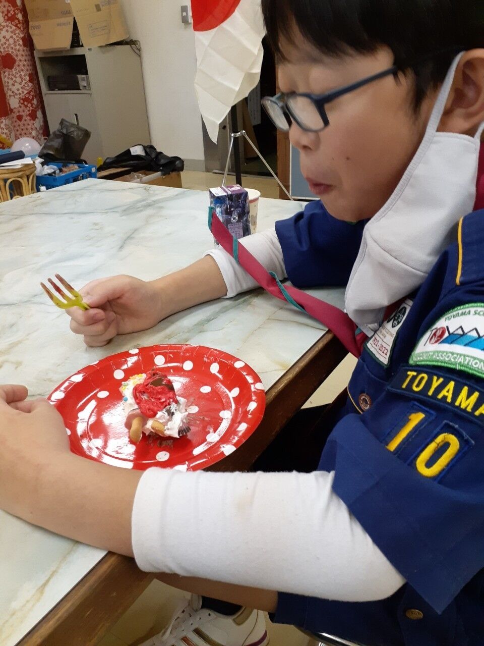 去年のように組対抗ケーキ作りをしたかったのですが今年は我慢、それぞれ自分のケーキを飾って静かにいただきましょう。