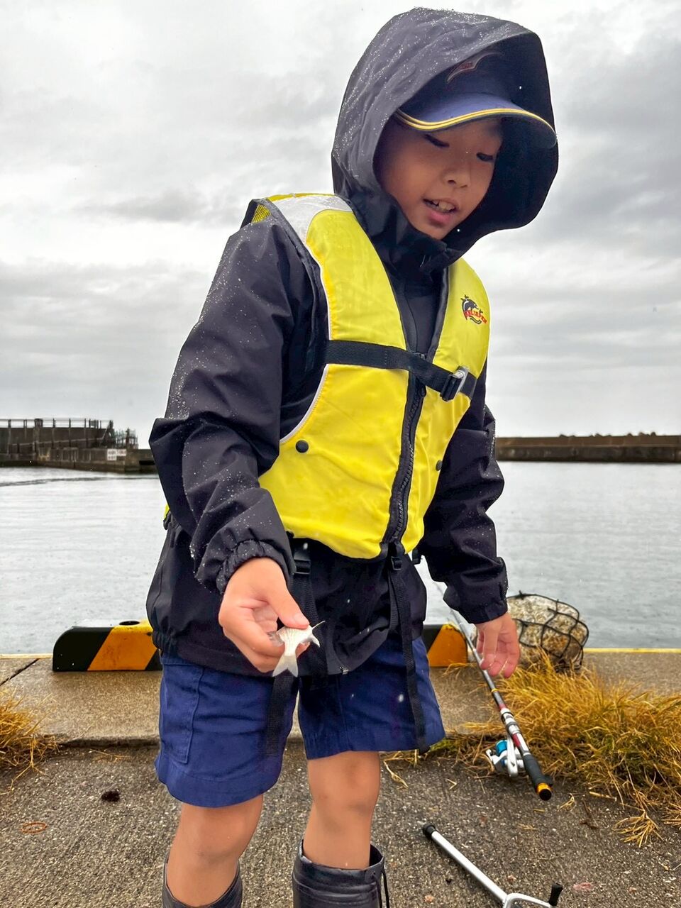 年1回の海釣り体験です。朝から天候が心配でしたが、午前中は曇り、午後から雨という予報。風もなく海釣りは、決行しました。