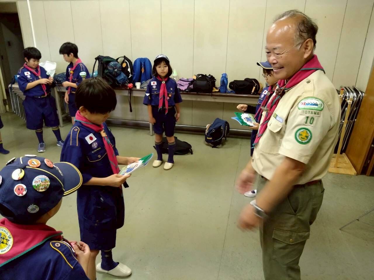 10月26日のカブ集会は、ビーバーと合同でサツマイモ掘りの予定でしたが、雨天のためプログラム変更となりました。ビーバーと一緒にペットボトルロケット製作と缶バッジつくりになりました。サツマイモ掘りは天候を見ながら後日、実施予定。ビーバー隊は、新たに2名のスカウトが入隊。本日は都合により1名の入隊式が行われました。ビーバー隊は、仮入隊を含めて16名になりました。