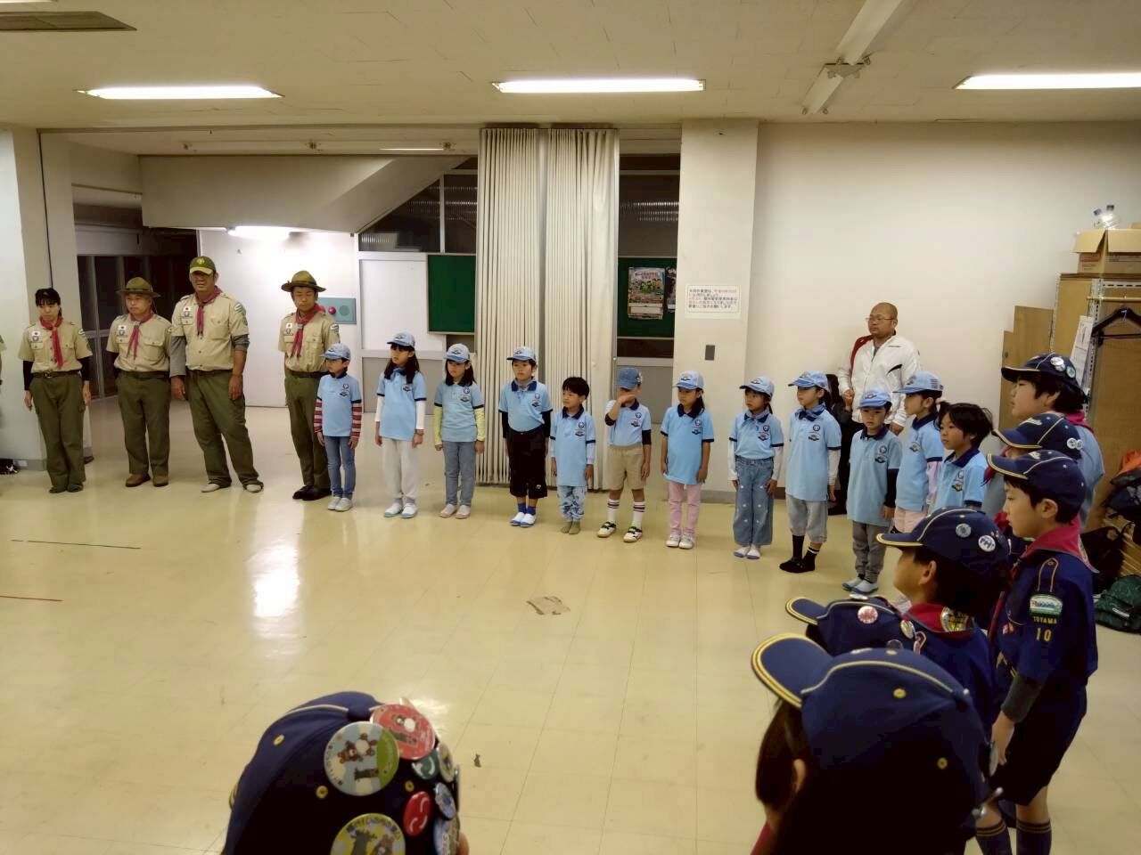 ビーバースカウトの入隊式に参加。ビーバー16名、カブ16名の活動が始まります。