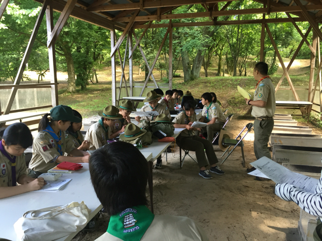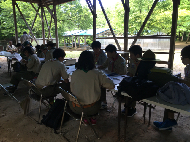 VSのプログラムは、3つのグループのなかの一つで、T君のチームは南砺3団、小矢部3団、射水3団、魚津2団の8人と一緒にバンブーハウス作成、ビザ作りを実施する予定です。