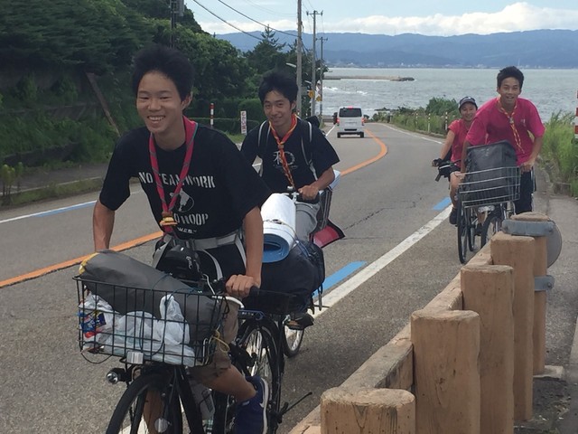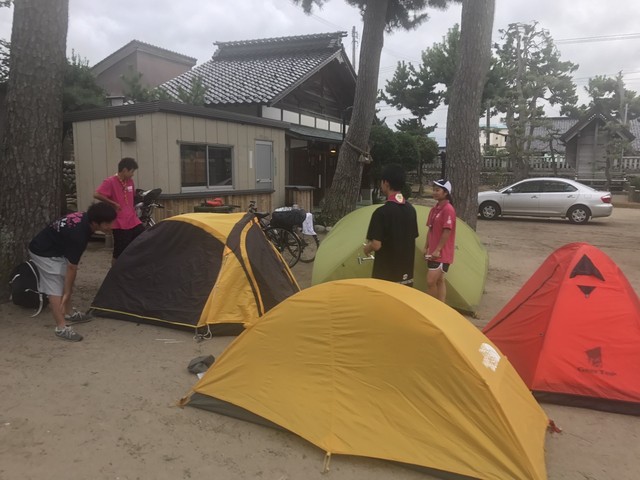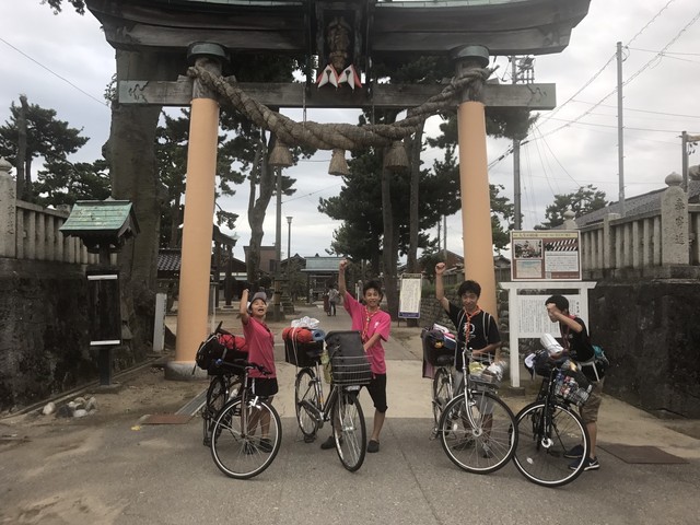 ベンチャーキャンプを終えその後すぐに、呉羽青少年自然の家を自転車で出発し、雨晴松太枝浜キャンプ場➡県境➡放生津八幡宮➡スカウトハウス(大沢野)がゴールでした。