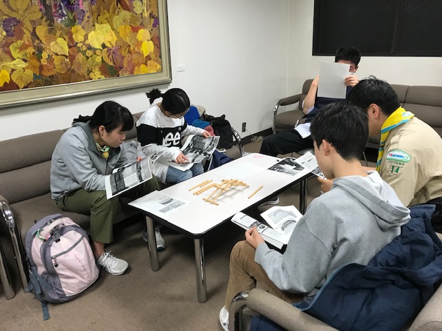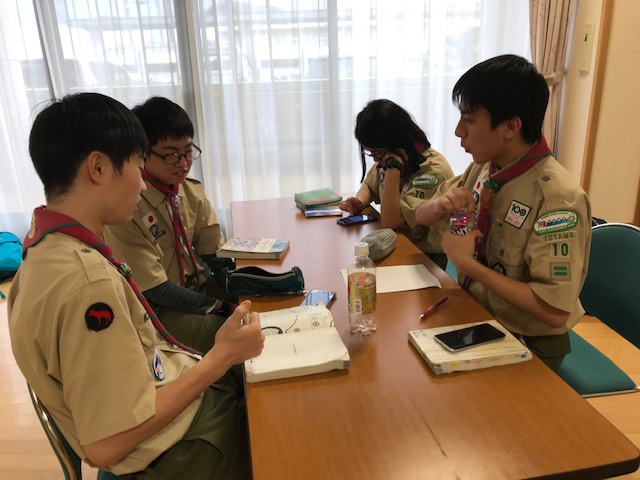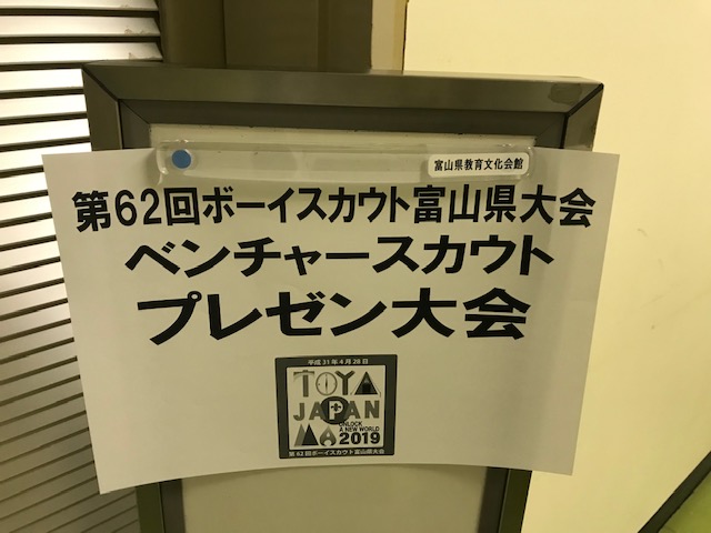 20193月9 富山地区ベンチャースカウト県大会プログラム会議 9日、10団のVS4名を含む富山地区のベンチャースカウトが富山県教育文化会館に集まって、県大会で製作するパイオニアリングの打ち合わせ会を開催。昨年夏のジャンボリー以来の再開でわきあいあい。 どのような大型工作物を作るかを検討。概ね2基の構造物を製作することで、2グループに分かれて検討することとなった。次回は16日と21日に会議です。23日には県連盟でVSのプレゼンテーションがあります。