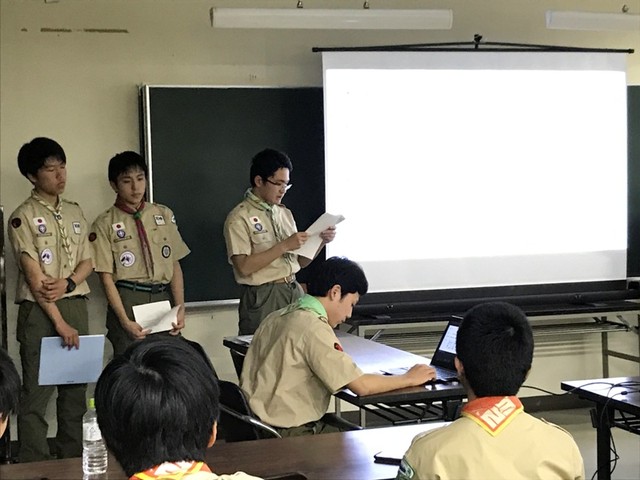 20193月31 富山第10団合同上進式 10団の合同上進式です。4名のスカウトが上進しました。新しく黒田隊長になりました。上進は、隊旗に向かって「ちかい」の確認をしました。少し神聖な気分です。上進式の後は、会議です。4月27日の県大会時に行う野営の計画案を検討しました。 次回は、4月2日富山地区VS集会です。 時間は19時~21時 10団スカウトハウス
