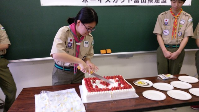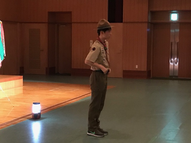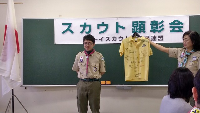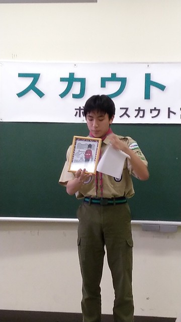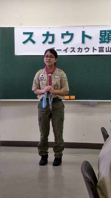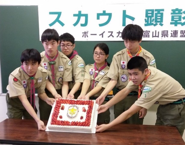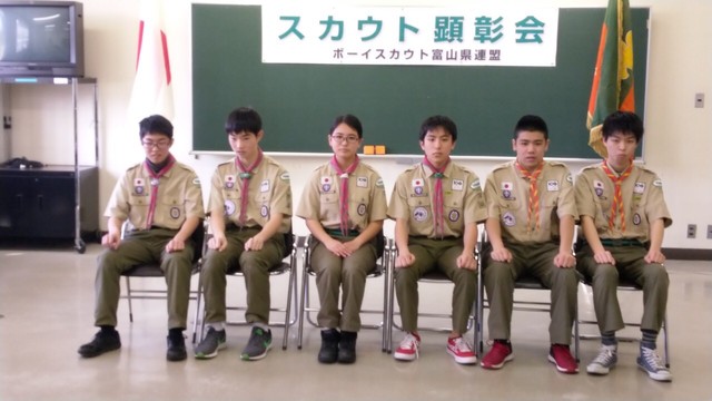 20193月31 スカウト顕彰会 3月31日、富山県教育文化会館で県連盟主催のスカウト研修会がありました。30年度は県内から菊スカウトが8名誕生しました。10団からは4名のスカウトが菊スカウトに進級、良く頑張りました。一時進級に意欲のない時期もありましたが、4名が刺激し合いながら頑張ってきました。もちろん菊にふさわしい成長も見られました。顕彰会の発表も素晴らしく、全員最後の周りの人たちへの感謝の言葉を口にしました。全員ベンチャーに進みますが、富士章を目指して頑張りましょう。