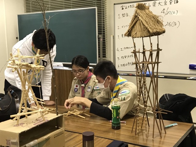 20193月19 富山地区VSター班集会 19日は、地区VSのもう一つの班、三角の班の集会でした。10団からは谷川、久郷、清水が参加しています。どんな構築物を作るのか楽しみです。23日の県連盟のプレゼンテーションが楽しみです。