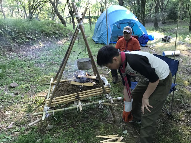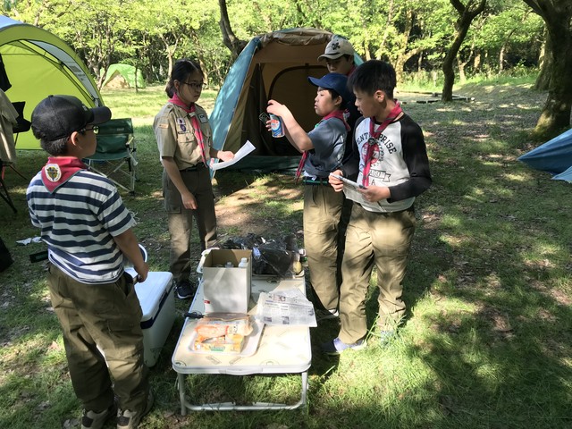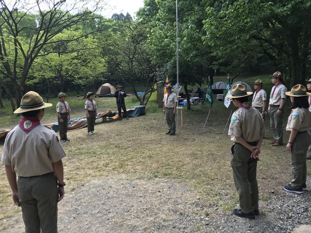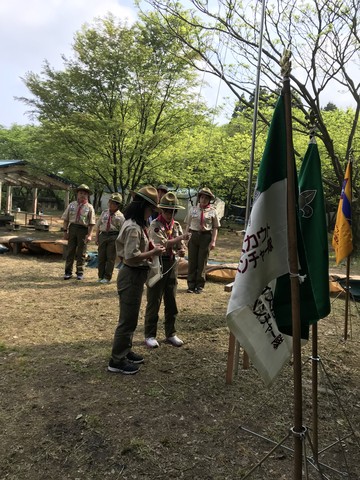 5月11日12日 呉羽青少年自然の家で合同野営を行いました。試験前や合宿で、参加は2名でしたが、春からボーイ隊に入ったスカウトのサポートや、進行を行ってくれました。