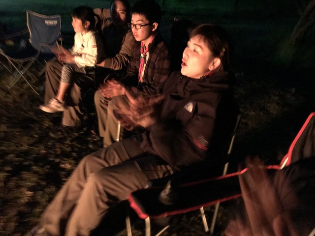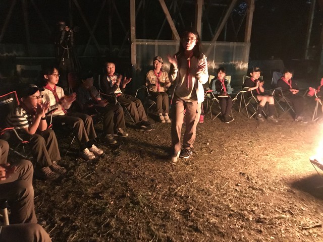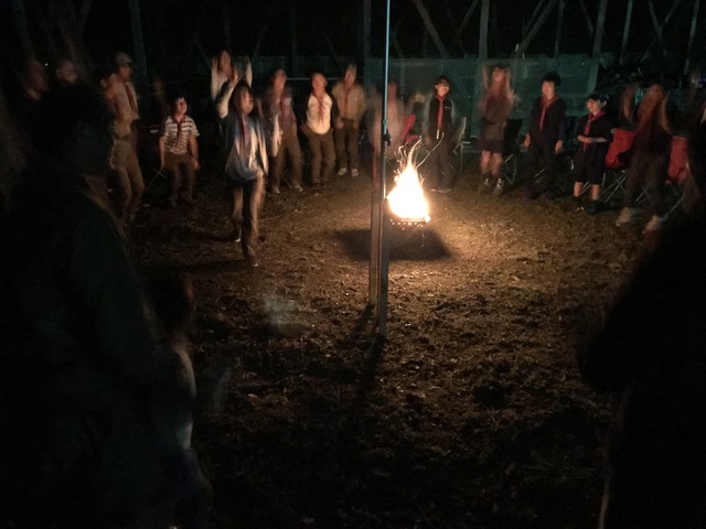 合同の営火では鈴木さんがどんどんアクションソングを出して、みんなを盛り上げ、谷川くんが翌日のスカウツオンを行いました。