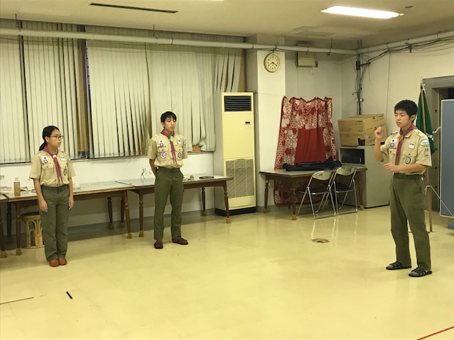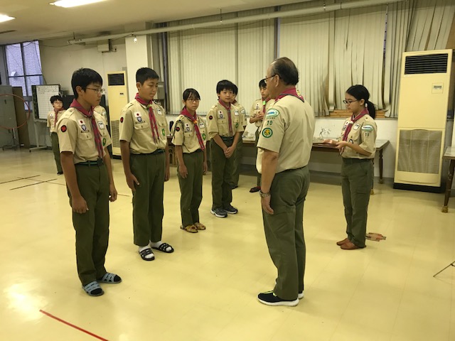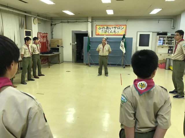次の日ボーイ隊はスカウトが揃い班長次長の任命式が行われ、新体制でのスタートとなりました。