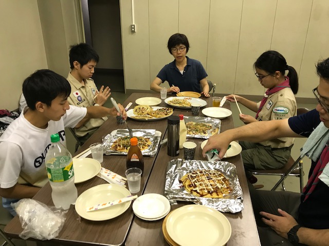 配給、夕食作りとこれからの活動計画を立て、リーダーにランタンの原理を聞き、ボーイ隊の隊長から、見た事もない昔のバーナー、雨の中でも消えない燃料を見せてもらいました。