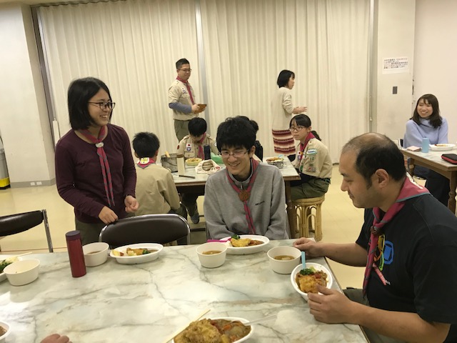 10 保護者との食事会のメニュー カレーはボーイ隊 カツはベンチャー担当
